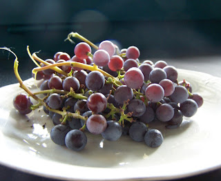 W międzyczasie wyszłam na taras urwać sobie kilka kiści winogron. Bodajże 2 lata temu zasadziliśmy 2 czy 3 krzaczki. W tym roku pierwszy raz owocują. Na wino jest ich za mało więc chyba zostaną po prostu zjedzone. :)