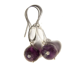 Klasyczne, srebrne kolczyki z kulami fasetowanego ametystu.